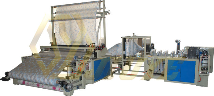 1.設備可生產各種塑料材質的浴簾(如PE、PVC、EVA等)。 2.設備的工作原理:上料→同步輸送→自動糾偏→自動上輔條→同步打孔→自動切邊→自動折疊→計數停機→切割→直接成品。 3.設備配備同步輸送裝置及二套齒輪式無極變速調節漲力裝置,以確保生產的浴簾成品尺寸精確。 4.設備配備超聲波裝置,可同步完成上輔料、打孔、修邊動作,也可增配PLC程序編程控制,使打孔節距更均勻,外觀更完美。 5.設備配不銹鋼鋼板一塊,自動折疊,調節方便,輕快平穩。 6.設備配滾輪收卷,收卷整齊不跑偏。 7.設備配收定點切斷,使生產的產品更美觀。 8.設備配有紅外線自動計數裝置及自動停機功能,計數到數停機,計數精確。 9.設備的牽引裝置均配有自動氣動抬起裝置,穿料方便,操作更人性化。整機臺面及對產品易造成衛生影響的部件全采用304不銹鋼材料制作。 10.設備采用變頻控制調速,電器部位布線規范合理、美觀、大方、操作方便。 11.本機全部操作過程僅需一人完成。
